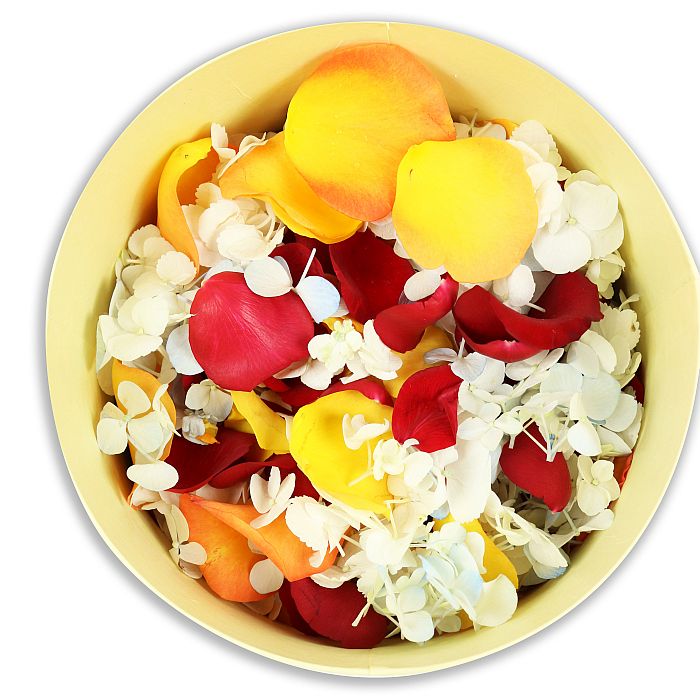 Our beautiful and unique bouquet combines vibrant hydrangea, rose, and chrysanthemum petals, creating a splendid arrangement perfect for any ceremony. The harmonious colors and elegant design make it a standout choice.