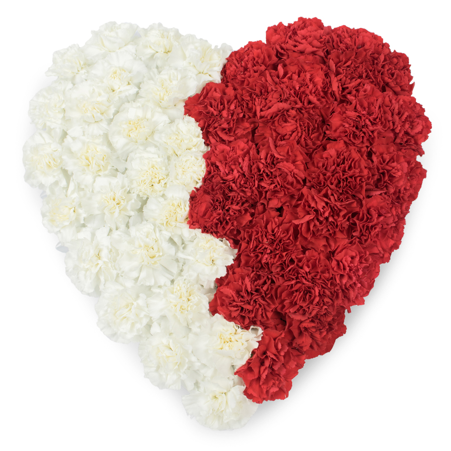 Fall in love with our luxurious heart-shaped bouquet featuring a unique blend of white and red carnations, expertly arranged by Handy Flowers. Every flower is hand-selected and cared for, guaranteeing a fresh, vibrant presentation ideal as a heartfelt gift. The contrasting hues of delicate whites and passionate reds symbolize enduring commitment and admiration.